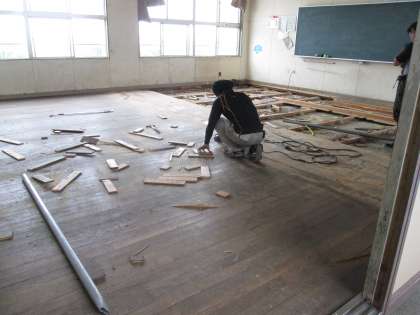 教室の床張替え工事開始
