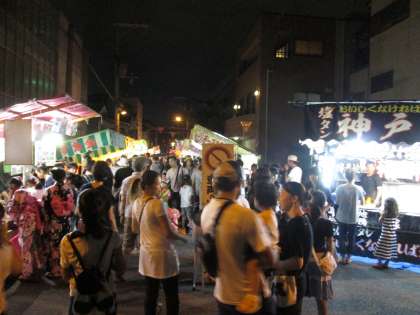 昨夜は、泉尾神社で夏祭り。一昨日は雨だったので、大勢の人々で賑わっていました。