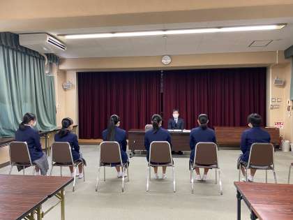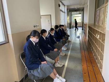 控え場所で待機しているときも、校長先生との面接のときも、普段とは違いとても緊張した面持ちでした。