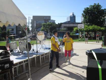 PTAの皆様が司会役として頑張っておられました。服装も、大阪コテコテです。