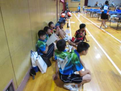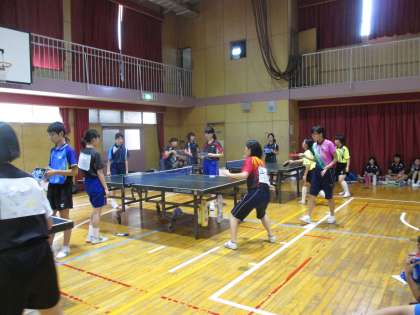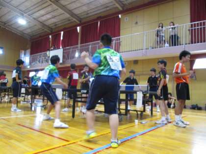 会場は、15校の選手たちであふれ、熱気ムンムン。卓球だけに、窓を閉めての試合で、40度近い気温の中で、熱戦が繰り広げられました。