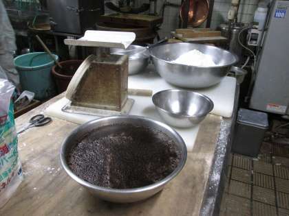 まずは、お店の中に・・・60年を誇る老舗和菓子屋の作業場に、入ることができました。