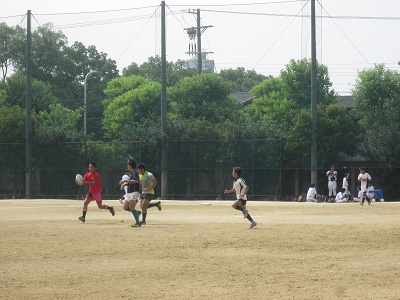楕円形のボールを、みんなで走ってつなぐラグビー。