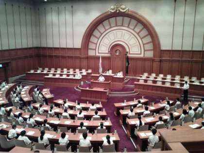 オリエンテーションです。教育委員会の皆様から、温かいお言葉をいただいています。