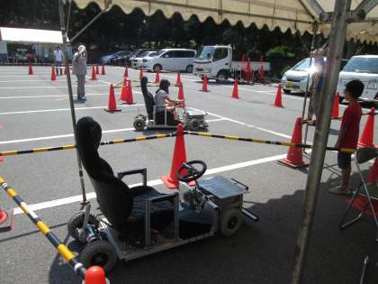 屋外では、ソーラーカーの試乗や港湾部による鉄扉模型の紹介が行われています。