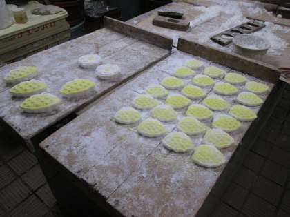 今日も早朝から、お店は忙しく、お盆を前にして、「はくせんこ」(落雁)やお餅づくりなど、息つく暇もありません。