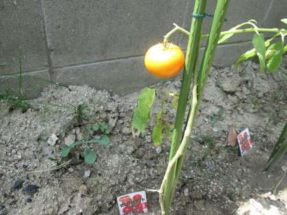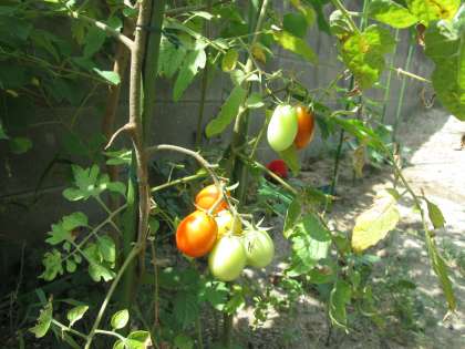 トマトはしだいに赤く色づいています。