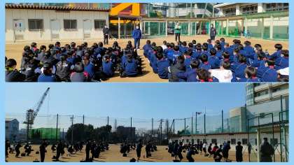 体育委員視界の元、マラソン大会の開会式がスタートしました。