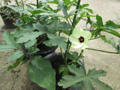 ナスの花でしょうか? きれいに咲いています。