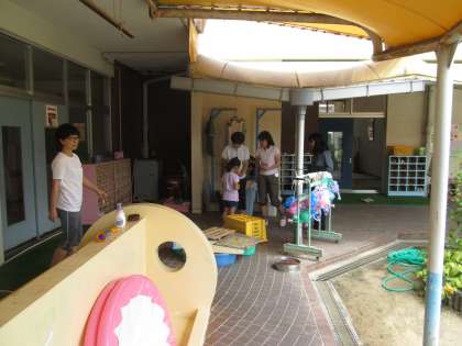 預かり保育の園児さんと先生たちは、とても楽しそうです。