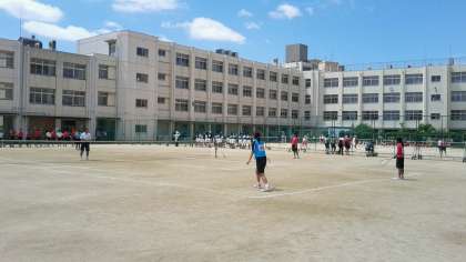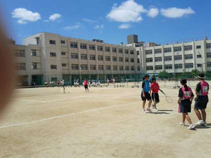 ソフトテニスの大会。残暑の厳しい中、行われています。