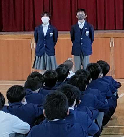 1年生が終わりにかかるにつれて授業態度を悪くなっているので気をつけること、1年生も残り少ないので皆に迷惑を掛けずに2年生に向けて有終の美を飾りましょう。