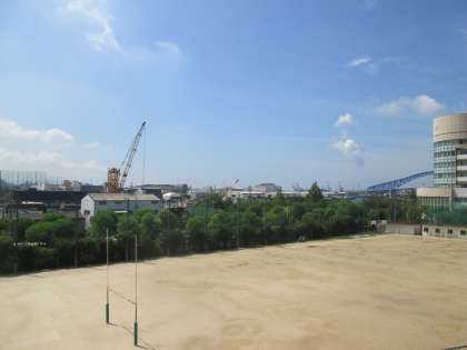 学校の南側の大正内港から、涼しい潮の香りが運ばれてきました。