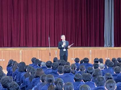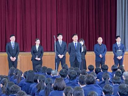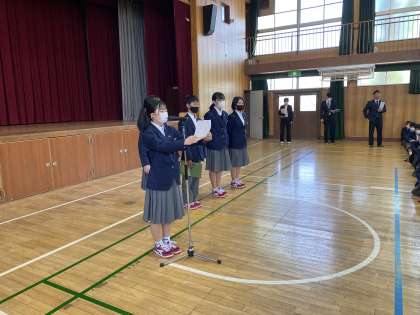 まず校長より、1年間の目標を持つように話をしたのち、対面式では2、3年生代表生徒から歓迎の言葉を、入学生から決意の言葉をそれぞれ話していただきました。どちらも立派な言葉で話しができ、大変良かったです。