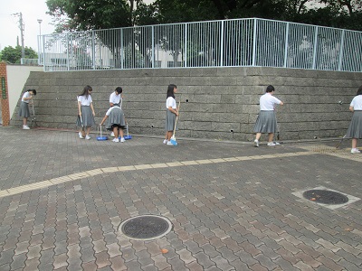 今朝は吹奏楽部が正門まわりの掃除を行ってくれました。