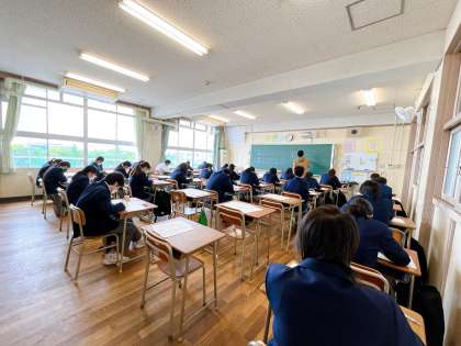 学力・学習状況調査を行いました。「緊張する」と、手に汗握りテストに取り組んだ生徒もいました。