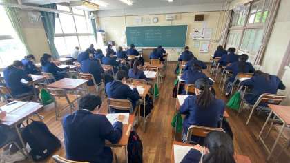 本日18日、3年生では全国学力・学習状況調査が実施されています。今までの実力を出し切ってほしいものです。