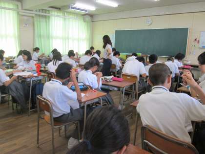美術は自分の名前のレタリング。上手な生徒を見かけました。