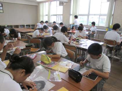 生徒たちは、小さい頃の写真をもとに、仕上げていきます。