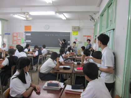 班対抗の早や押しクイズ的な要素も取り入れながら、楽しく授業を展開されていました。