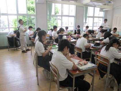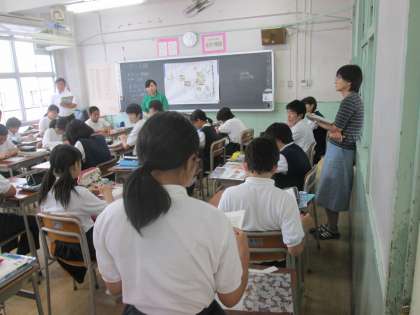 ここでは、「コ」の字型の座席体形で、授業が展開されていました。