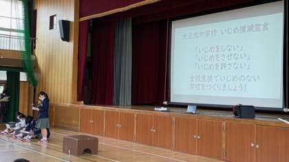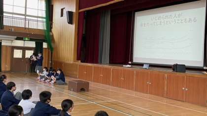 校長よりいじめはあってはならない事、許されない事である話を行い、教室に戻って担任の先生等から「いじめ」についてしっかりと考えてもらうよう活動しました。