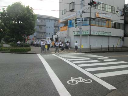 生徒会執行部による交通安全。そして、あいさつ運動。
