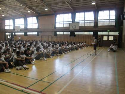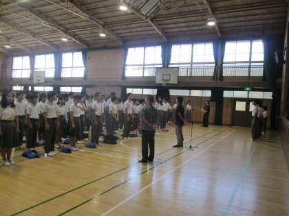 朝夕は涼しくなり、いい気候になってきました。今日も本当にいいお天気で、体育大会までお天気が続くことを願っています。また、体育大会までケガの無いように注意してください。