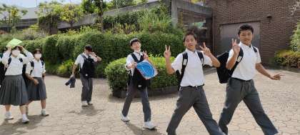 スタンプラリーで中々見つからない先生を見つけて大喜びです。