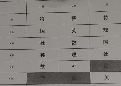 月曜日、1組6限理科、2組6限国語、3組5限国語に変更になっています。