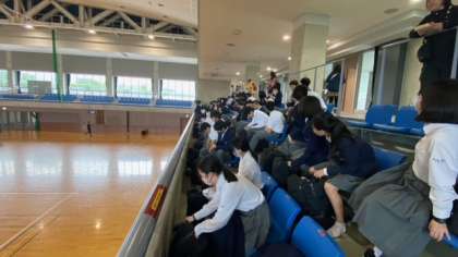 体育館ギャラリーで、昼食です。