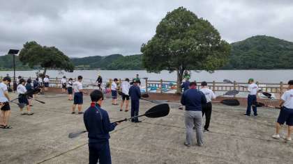カヤック体験です。やる気満々!