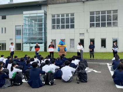 お世話になった美浜町の皆さん、ありがとうございました。ここでの多くの体験と思い出を胸に退村します。へしこちゃんもお見送りに来てくれました。