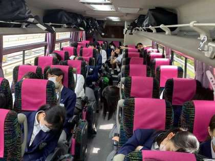 バスの中、CDの音楽が流れ、昼食でお腹いっぱいになり、心地よい暖かさ、ほどよいバスのゆれ。当然ながらzzz....