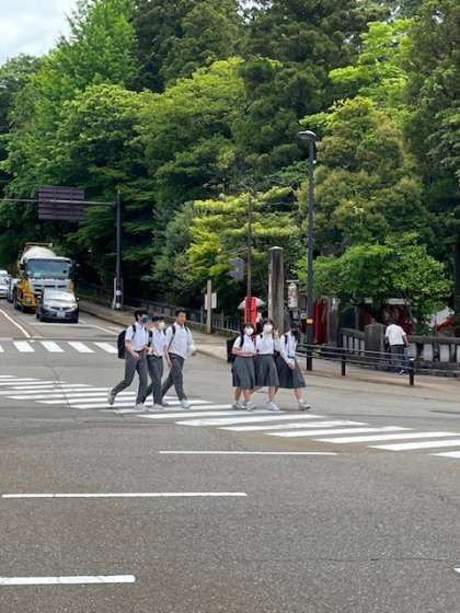 交通ルールを守り、研修を進めているようです。食事の時間も考えてねー。