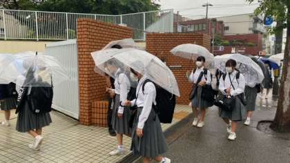 子どもたちの登校を見守っていると、いろいろな傘がある事に目がいきます。