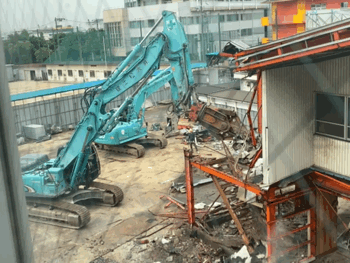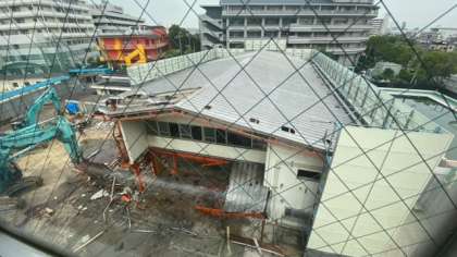 一部屋根が解体されていました。重機が硬い鉄骨を簡単に切っていきます。