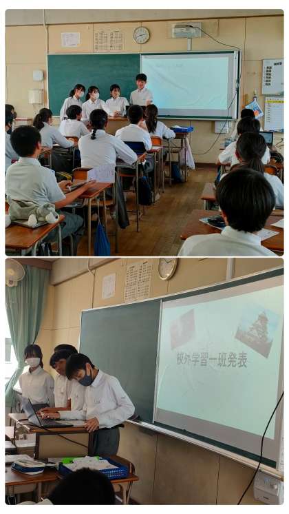 採点を皆で行い、各クラス2班が明日の学年発表に挑みます。