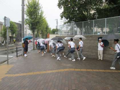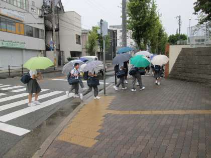 登校時間になって、雨が降り出しました。