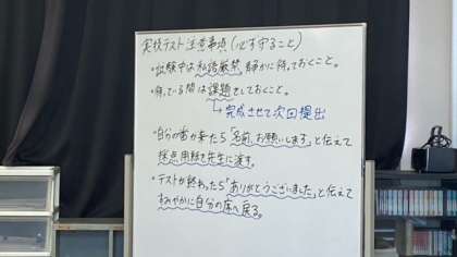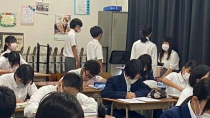1年生では、音楽の時間中に校歌のテストが行われていました。上手に歌えたかな?