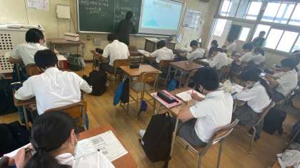 3組では、社会科です。地理の授業で、瀬戸内での工業や農業について学んでいます。