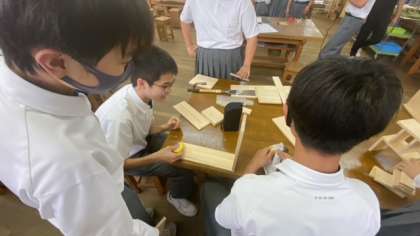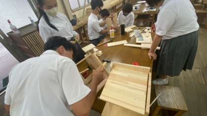 技術の時間で木工製品を作製しています。