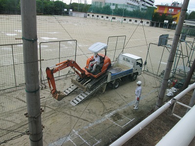 運動場の端で、工事!?