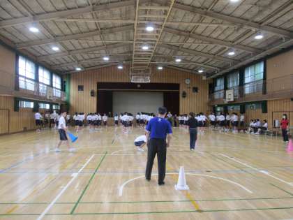 朝に雨は上がったものの、学年練習は体育館となりました。