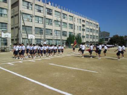 本番では、吹奏楽部の演奏を先頭に、生徒会役員による校旗に続き、3年生から入場します。
