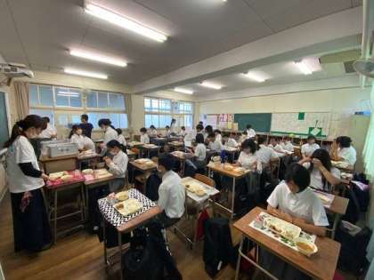 竜田揚げ、大人気ですねー。おかわりに行列ができていました。たくさん食べて欲しいですが、バランス良く食べてくださいね(^.^)