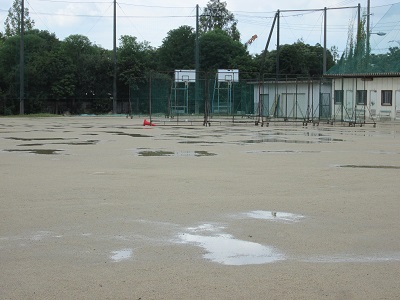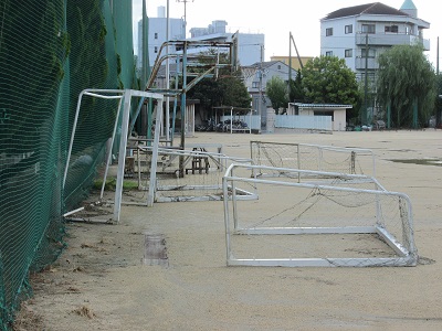憎い低気圧ですが、グラウンドは水浸し状態のうえに、ハンドボールゴールが数台倒れ、移動式の防球ネットも散乱、昨夜は、今年の台風以上の迫力であったようです。