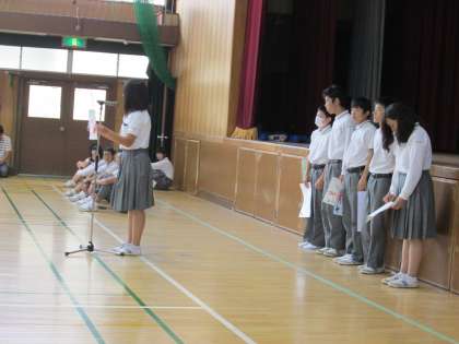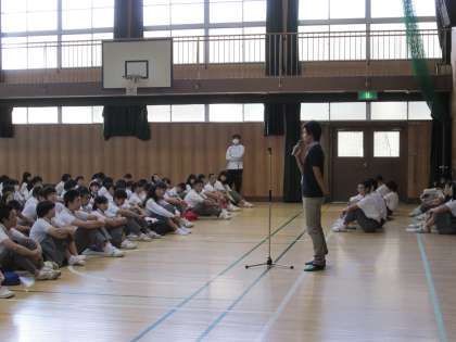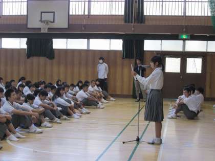 今日の全校集会は、集合時間は合格。しかし、集まってからの私語が多く、注意を受けました。
