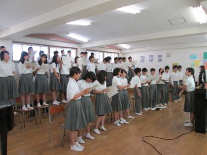 2年生が音楽室を使って、自由曲の練習をしています。