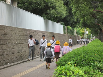 仲良く登校、元気な小学生!